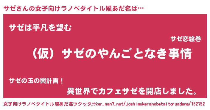 | 男性向けラノベタイトル風あだ名 | 『サゼの憂鬱』『転生したらサゼだった件』 |