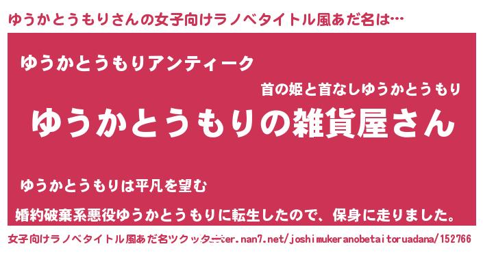 | ファンタジー風あだ名 | 『エターナルユウカトウモリー』 |