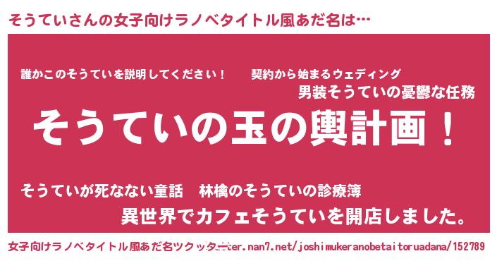 | 男性向けラノベタイトル風あだ名 | 『そうてい~年齢イコール彼女いない歴の魔法使い~』 |