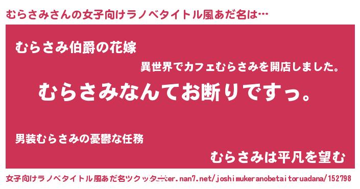 | 男性向けラノベタイトル風あだ名 | 『魔法科高校のむらさみ』 |