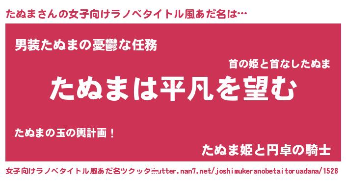 | 胡散臭い通販商品みたいなあだ名 | 『信頼と実績のサプリメント…その名も「たぬま」』 |