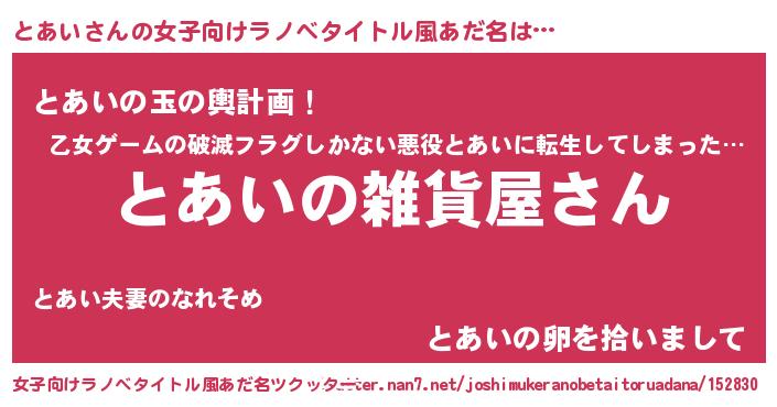 | 肩書あだ名 | 『とあい国家主席』『とあい少佐』 |