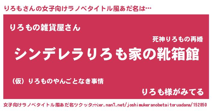 | 男性向けラノベタイトル風あだ名 | 『緋弾のリロモ』『りろもの憂鬱』 |