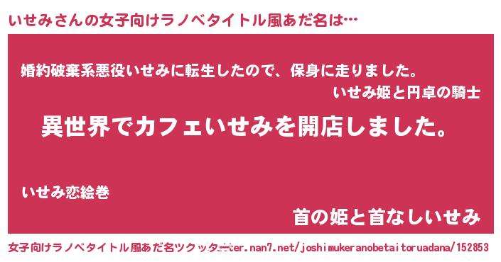 | 意味不明あだ名 | 『永久保存いせみ』『なめこ科いせみ属』 |