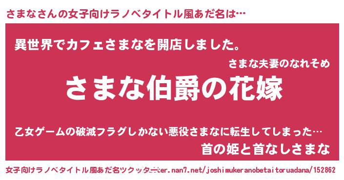 | ヘコむあだ名 | 『なまこ酢』『さまな(震え声)』 |