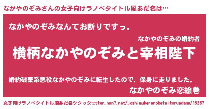 | 男性向けラノベタイトル風あだ名 | 『なかやのぞみに滅ぼされるだけの簡単なお仕事です』 |