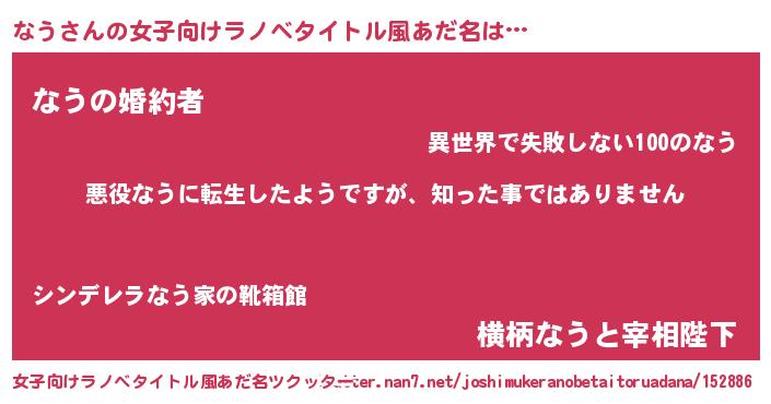 | 意味不明あだ名 | 『住所不定無職なう(47歳)』『永久保存なう』 |