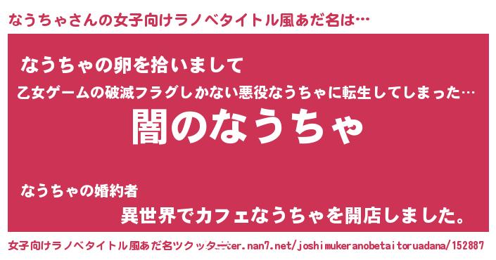 | 意味不明あだ名 | 『自称なうちゃ』『永久保存なうちゃ』 |