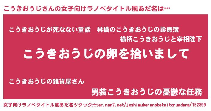 | 男性向けラノベタイトル風あだ名 | 『ダンジョンにこうきおうじを求めるのは間違っているだろうか』 |