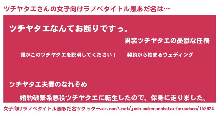 | 胡散臭い通販商品みたいなあだ名 | 『億万長者になれるブレスレット…その名も「ツチヤタエ」』 |