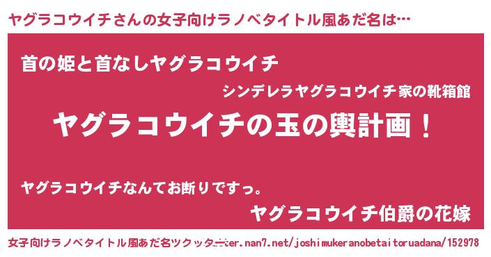 | 胡散臭い通販商品みたいなあだ名 | 『運命の人と巡り会える高級そうな壺…その名も「ヤグラコウイチ」』 |