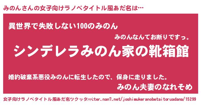 | 胡散臭い通販商品みたいなあだ名 | 『絶対に幸福をもたらす健康食品…その名も「みのん」』 |