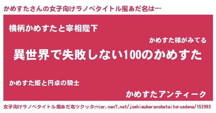 | 胡散臭い通販商品みたいなあだ名 | 『絶対に幸福をもたらす水素水…その名も「かめすた」』 |