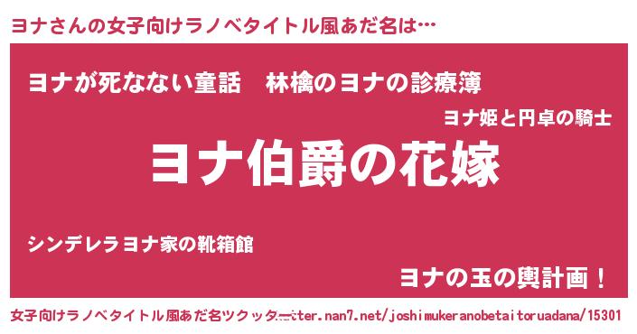 | 意味不明あだ名 | 『ヨナフォーエバー』『ニラ科ヨナ属』 |