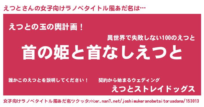 | 男性向けラノベタイトル風あだ名 | 『はたらくえつとさま!』 |