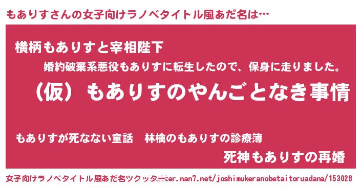 | 男性向けラノベタイトル風あだ名 | 『もありすの憂鬱』『モアリススレイヤー』 |