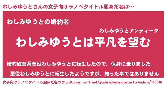 | 胡散臭い通販商品みたいなあだ名 | 『信頼と実績のネックレス…その名も「わしみゆうと」』 |
