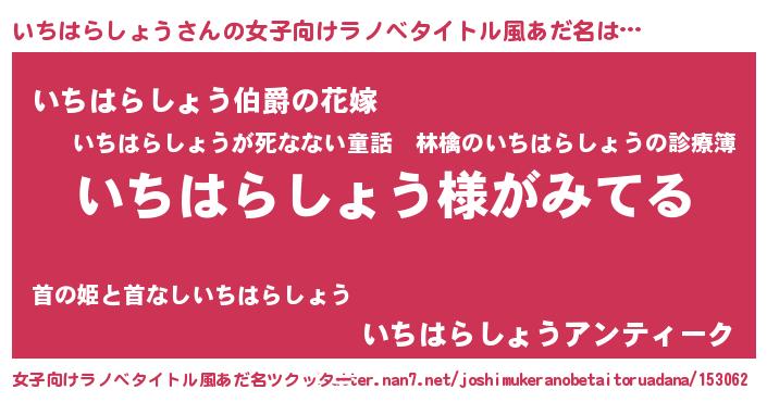 | 男性向けラノベタイトル風あだ名 | 『いちはらしょうの嫁は女の子じゃないと思った?』 |