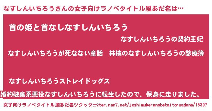 | 意味不明あだ名 | 『住所不定無職なすしんいちろう(41歳)』 |