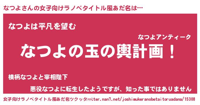 | ポケモン風あだ名 | 『ナツキング』『ヒナツヨ』 |