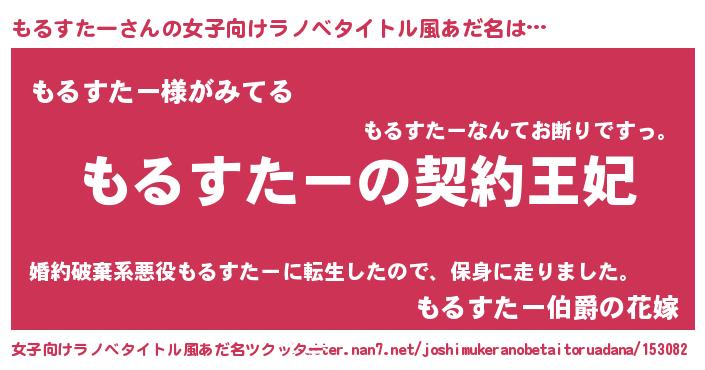 | 胡散臭い通販商品みたいなあだ名 | 『来世でも幸せになれる健康食品…その名も「もるすたー」』 |