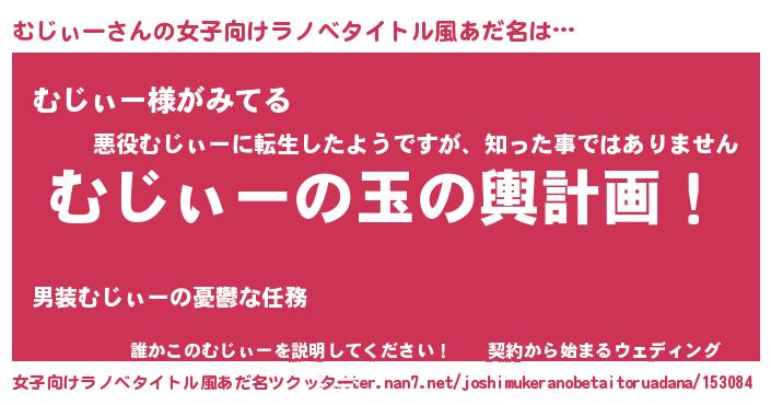 | 男性向けラノベタイトル風あだ名 | 『むじぃー~年齢イコール彼女いない歴の魔法使い~』 |