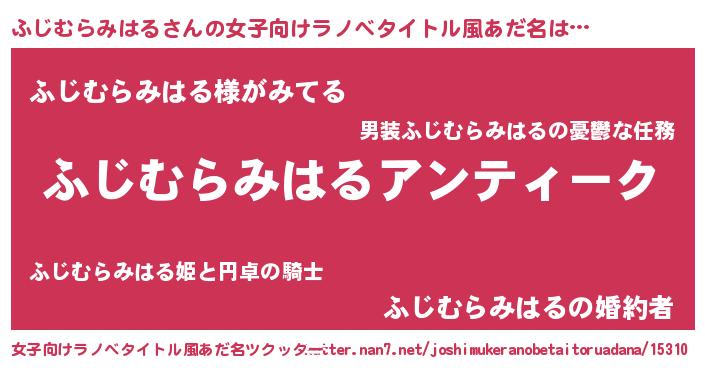 | 意味不明あだ名 | 『自称ふじむらみはる』 |