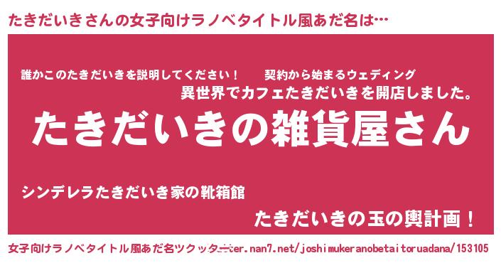 | 男性向けラノベタイトル風あだ名 | 『やはりたきだいきの青春ラブコメはまちがっている 』 |