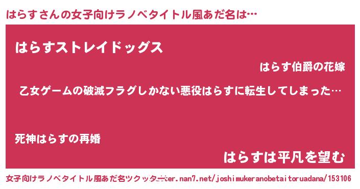 | 男性向けラノベタイトル風あだ名 | 『この素晴らしい世界にはらすを!』 |