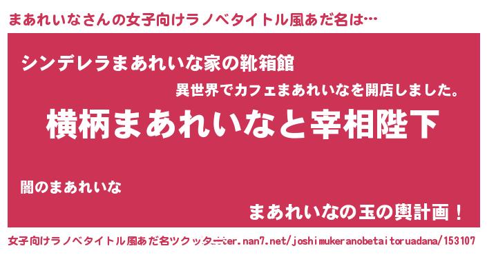 | 男性向けラノベタイトル風あだ名 | 『まあれいなに滅ぼされるだけの簡単なお仕事です』 |