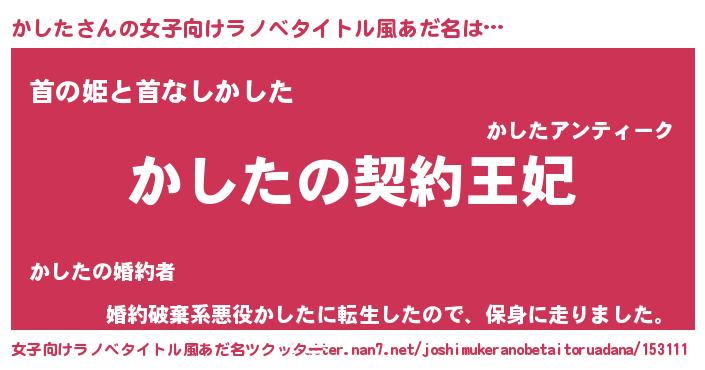| 男性向けラノベタイトル風あだ名 | 『かしたという概念が存在しない退屈な世界 』 |
