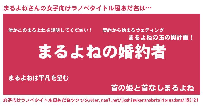 | 胡散臭い通販商品みたいなあだ名 | 『運命の人と巡り会える高級そうな壺…その名も「まるよね」』 |
