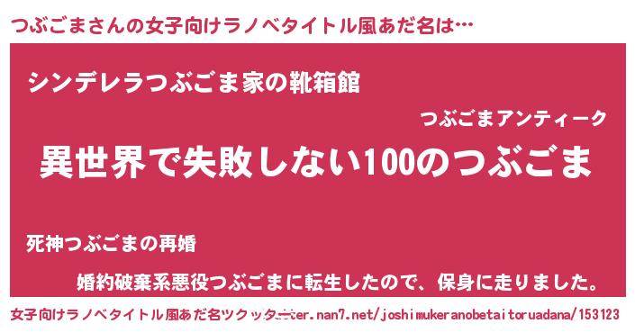 | 胡散臭い通販商品みたいなあだ名 | 『絶対に幸福をもたらす健康食品…その名も「つぶごま」』 |