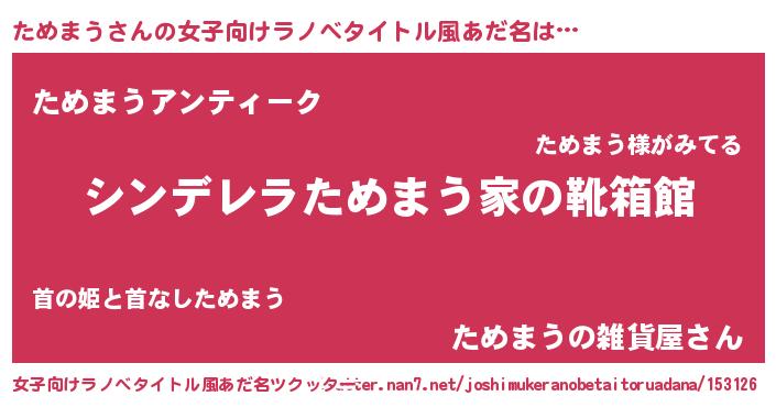 | 恥ずかしいあだ名 | 『タメマウデラックス』『ためっちょ』 |