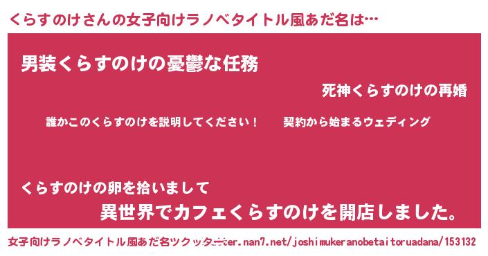 | 男性向けラノベタイトル風あだ名 | 『クラスノケアートオンライン』 |