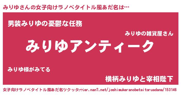 | 男性向けラノベタイトル風あだ名 | 『魔法科高校のみりゆ』 |