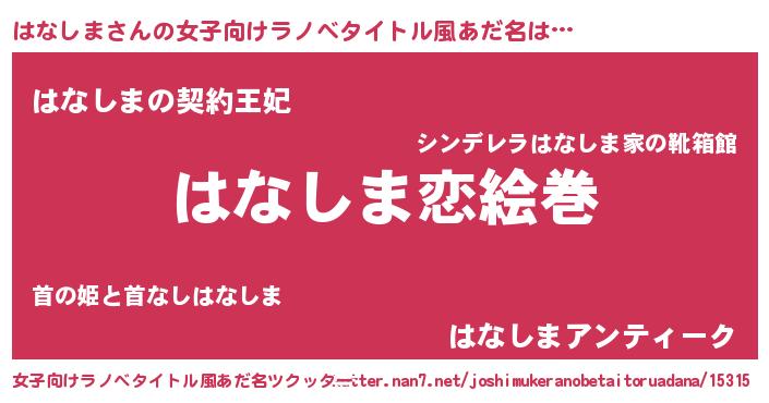 | 男性向けラノベタイトル風あだ名 | 『ノーゲーム・ノーハナシマ』 |