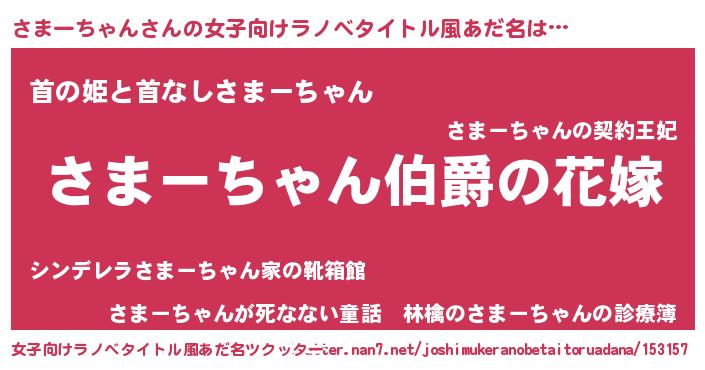 | 男性向けラノベタイトル風あだ名 | 『やはりさまーちゃんの青春ラブコメはまちがっている 』 |