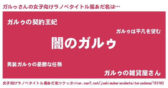 | ヘコむあだ名 | 『ガルゥ(笑)』『豆乳』『ガルぷりん』 |