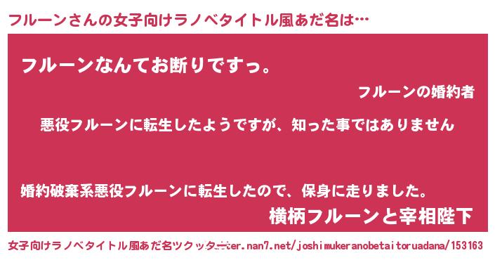 | 男性向けラノベタイトル風あだ名 | 『この素晴らしい世界にフルーンを!』 |