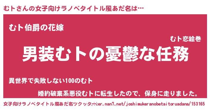 | 男性向けラノベタイトル風あだ名 | 『うちのむトが世界を掌握している!』 |
