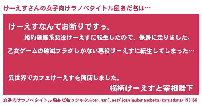 | 男性向けラノベタイトル風あだ名 | 『この素晴らしい世界にけーえすを!』 |