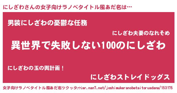 | 胡散臭い通販商品みたいなあだ名 | 『絶対に幸福をもたらす健康食品…その名も「にしざわ」』 |