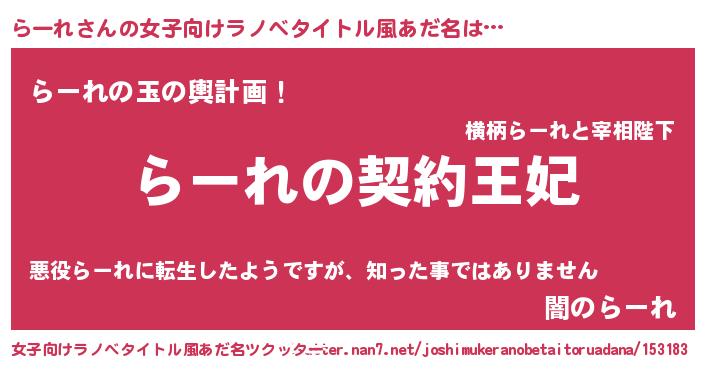 | ヘコむあだ名 | 『らーれ(笑)』『酢こんぶ』 |