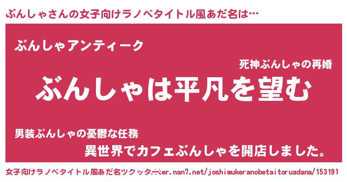 | 男性向けラノベタイトル風あだ名 | 『ダンジョンにぶんしゃを求めるのは間違っているだろうか』 |