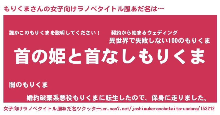 | 意味不明あだ名 | 『ペロリンもりくま』『永久保存もりくま』 |