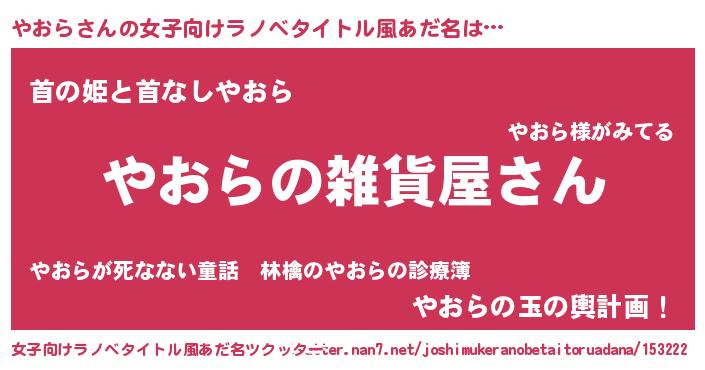 | 男性向けラノベタイトル風あだ名 | 『やはりやおらの青春ラブコメはまちがっている 』 |
