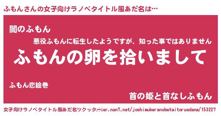 | 意味不明あだ名 | 『とにかく怪しいふもん』『自称ふもん』 |