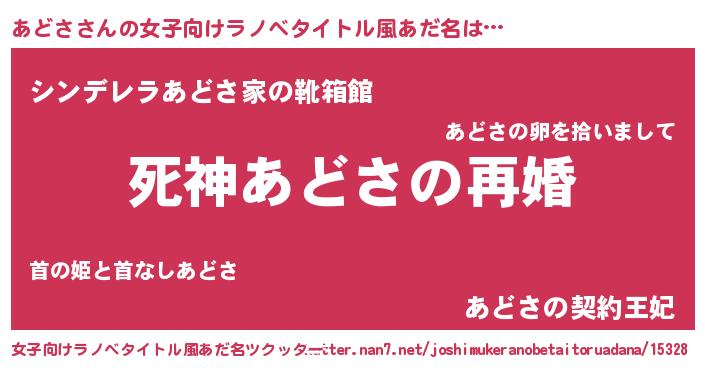 | 男性向けラノベタイトル風あだ名 | 『ノーゲーム・ノーアドサ』 |