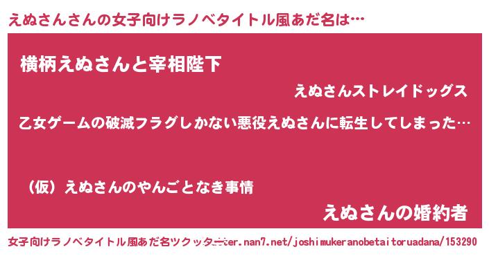 | 男性向けラノベタイトル風あだ名 | 『この素晴らしい世界にえぬさんを!』 |